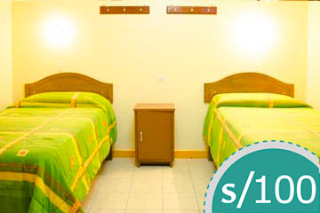 Contamos con habitaciones elegantemente decoradas con iluminación natural y un gran toque de calidez haciéndolo sentir como en su casa. Camas tendidas con sábanas y un edredón acogedor. La habitación está equipada con baño privado, toallas limpias, una mesa de noche, armario, una silla, escritorio para escribir o trabajar, toma corriente, ventilador, TV cable, internet inalámbrico (WI-FI), ducha con agua fría y caliente las 24 horas.